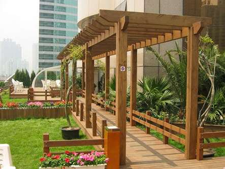 2、施工的時候細(xì)節(jié)部分也是要注意防腐性能的保證,在進(jìn)行防腐木長廊的建造的時候,連接件也是要注意的,和防腐木一樣,要使用更為防腐的材料才行,比如說是鍍鋅螺釘?shù)龋WC這些連接件不會很快的腐朽成為短板。