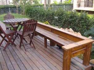 1、應(yīng)注意防腐木材的吸水率。在室外環(huán)境中使用防腐木材時,木材可能因破水而膨脹,因此,在設(shè)計中好留有一定的空間,避免大面積的膨脹變形,特別是對于吸水率較高的木材,應(yīng)留有較大的空間。