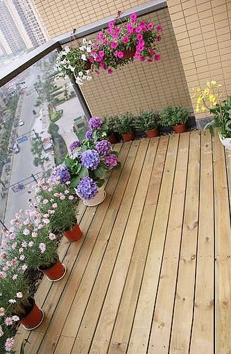 在家中有限的空間里,選擇安裝防腐木陽(yáng)臺(tái),在地下鋪裝一層防腐木地板,同樣是一種不錯(cuò)的選擇。尤其對(duì)于種植園藝愛(ài)好者來(lái)說(shuō),在陽(yáng)臺(tái)的區(qū)域鋪裝上防腐木地板,不僅能讓生硬乏味的陽(yáng)臺(tái)變得有活力,而種植的花卉與木地板的結(jié)合,能將陽(yáng)臺(tái)整個(gè)格調(diào)提升一個(gè)檔次。